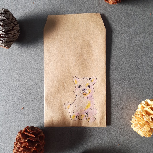 F-00002 やさしい色合いで描かれた、子犬のイラストがかわいいポチ袋です。 クラフト紙の素朴な風合いと、手描きならではのにじみや表情が、ほっと心和むデザインになっています。 お年玉やちょっとしたお礼、心づけや小さなプレゼントを入れるのにぴったり。 シンプルなので、年齢やシーンを選ばずお使いいただけます。 一枚一枚表情が少しずつ異なり、ハンドメイドならではの温もりを感じていただけるのも魅力です。 贈る気持ちに、そっとやさしさを添えてくれるポチ袋です。