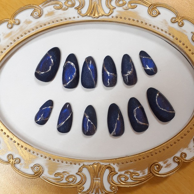 マットネイビー × メタリックブルーの幻想ネイルチップ