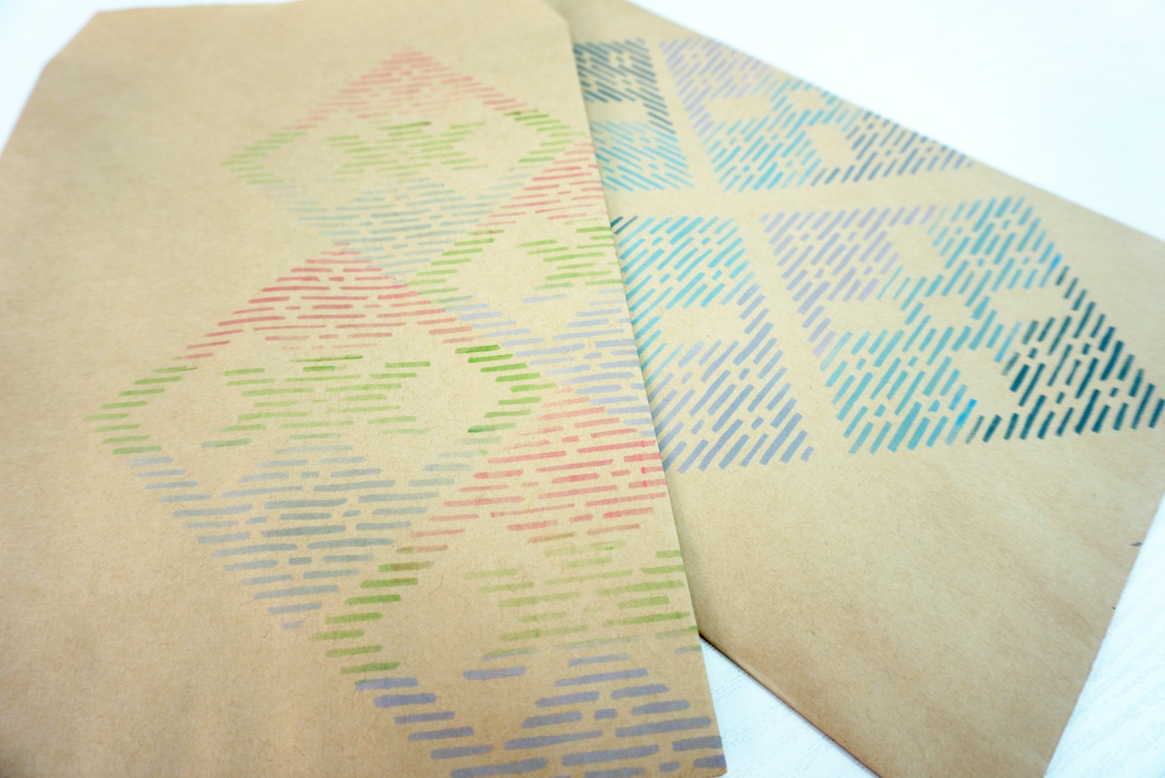 津軽伝統の「こぎん刺し柄」をモチーフにした、温もりあふれる手作り封筒。