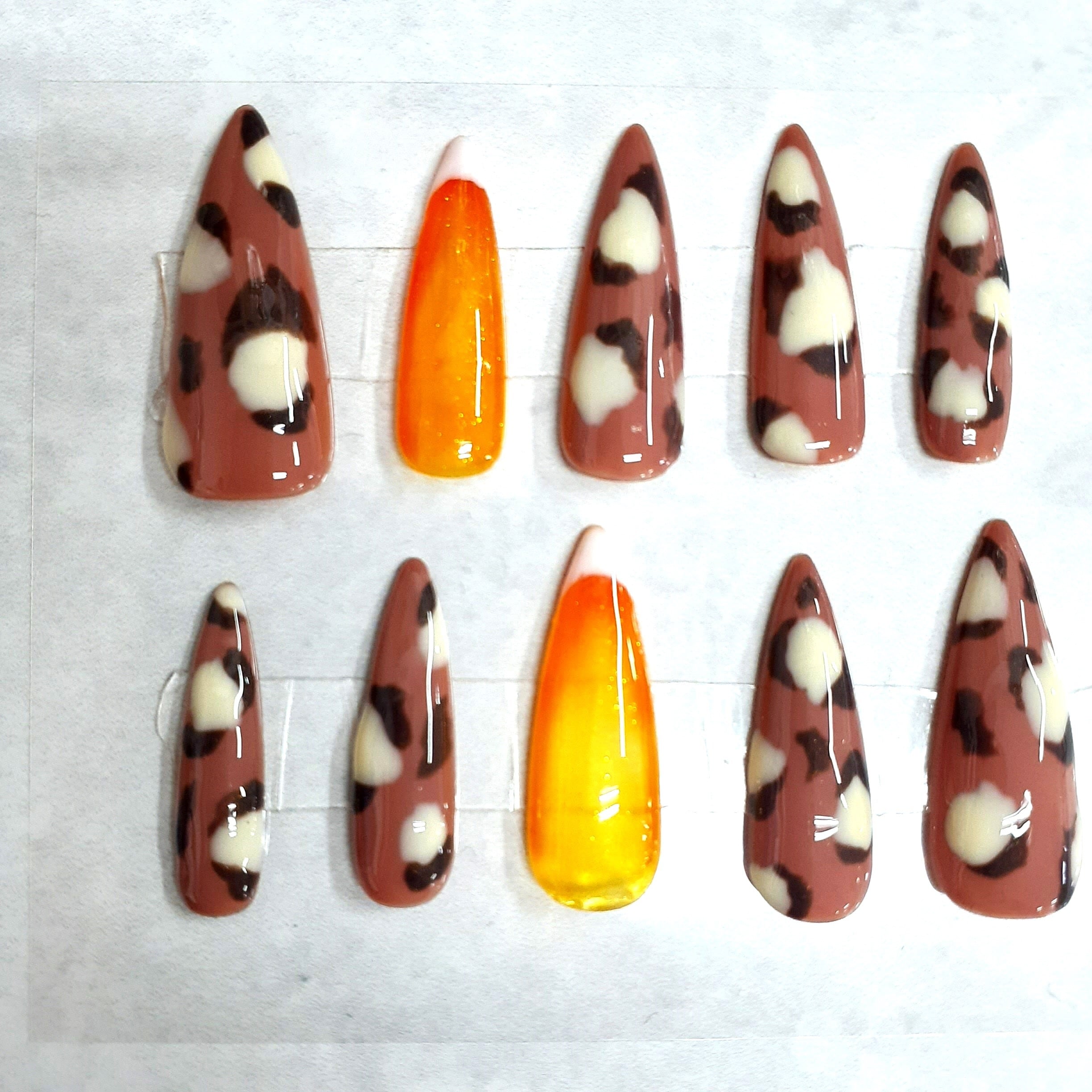 ヒョウ柄(レオパード)をメインにデザインした、存在感のある大人可愛いネイルチップです。